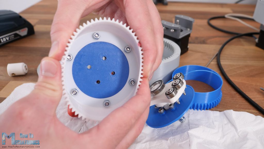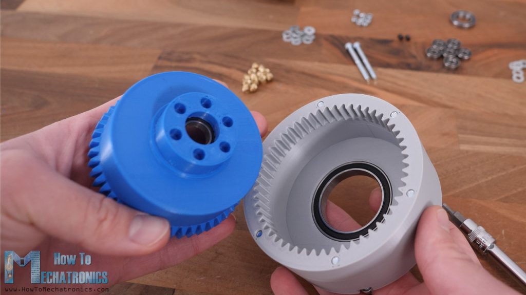 Though, we can note here that fastening these bolts can be a bit messy, because the holes on the eccentric bearing are small so that the bolts can make a thread into them and have tight fit to avoid any backlash from here. It’s probably not the best solution but it will work.