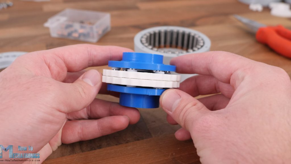 Here’s how two cycloidal disks in combination with the output shaft look when assembled.