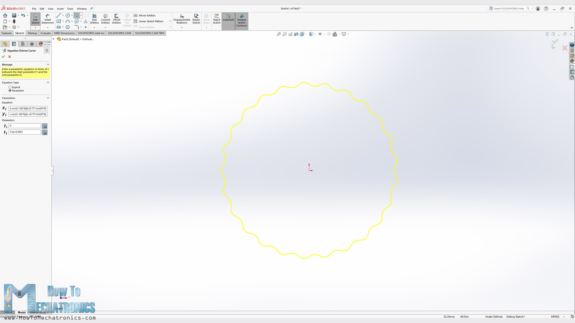 Now I will show you how I used these parametric equations for making the cycloidal disks using SOLIDWORKS and its Equation Driven Curve tool.