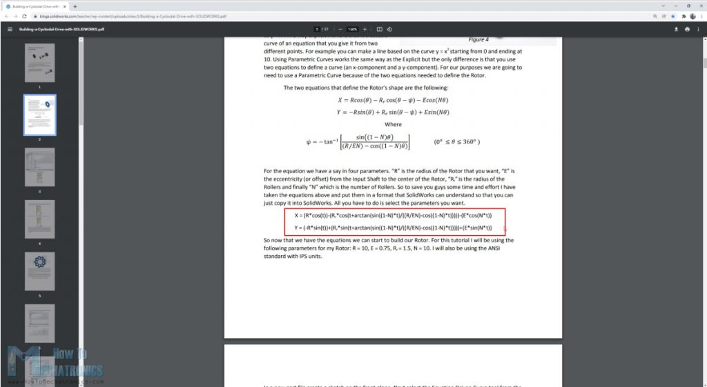 Now I will show you how I used these parametric equations for making the cycloidal disks using SOLIDWORKS and its Equation Driven Curve tool.