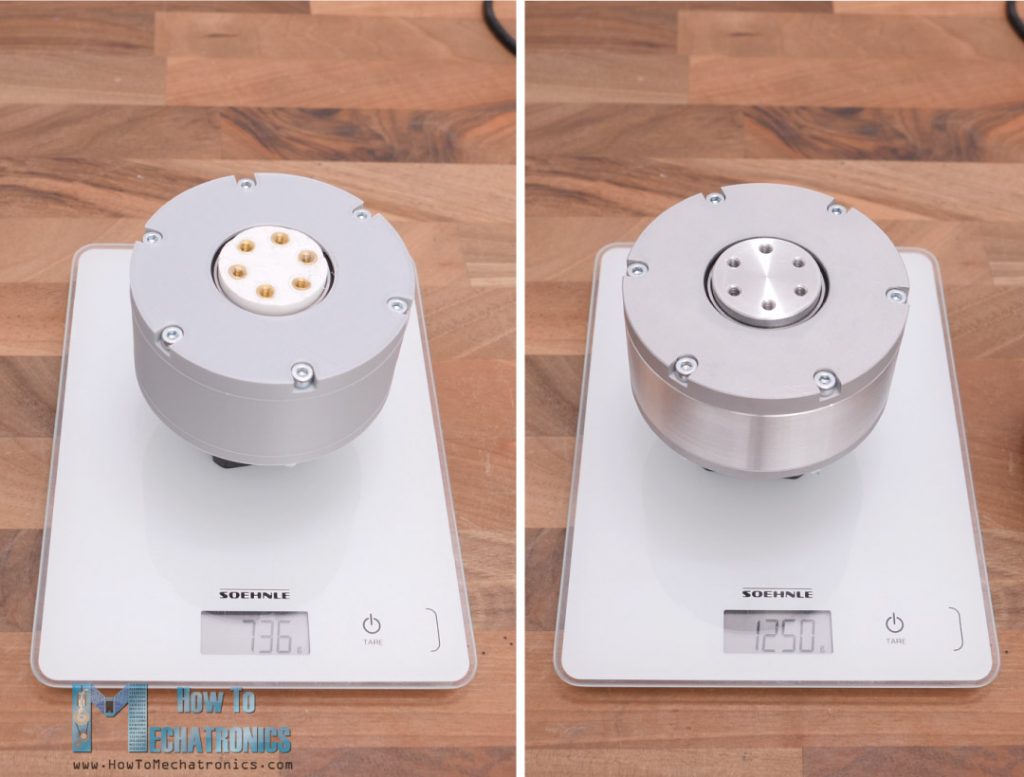 All right, so now that I have the two cycloidal drivers ready and it’s time to put them through some tests and see how they perform. A quick note before we see the tests, the weight of the CNC machined version is considerably higher that the 3D printed one.