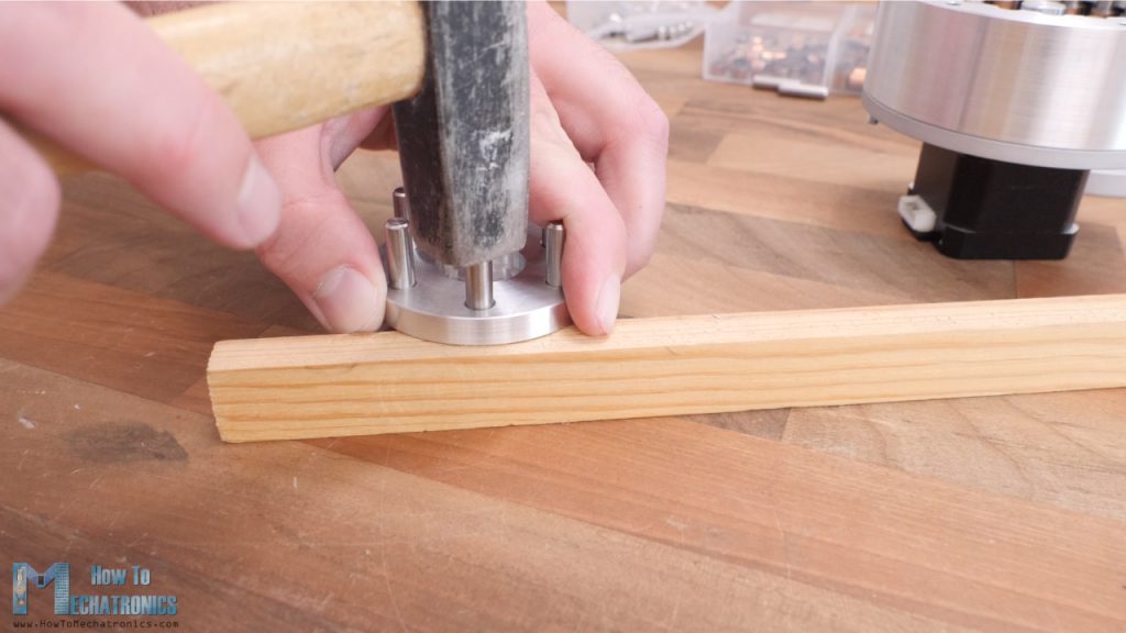 Once we secure the pins, we can insert the 8mm bushings. Here we need 15mm long bushings but at the time of making this project I couldn’t find that dimension so I used 10mm bushings but inserted some washers for compensation.