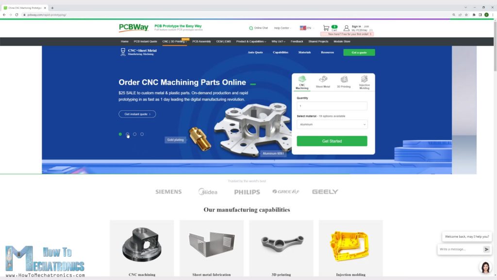 I ordered the CNC machined parts from PCBWay. Along their PCB manufacturing services, they also offer CNC Machining, 3D Printing, Sheet Metal Fabrication and Injection Molding services.