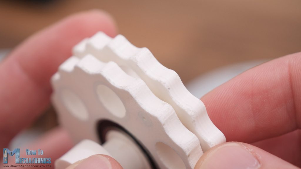 We can notice that the wear is more present on one side of the disks, and I guess that’s the bottom side of the parts when 3D printed. That’s due to the fact that the first couple of layers when 3D printing tend to extrude more filament.
