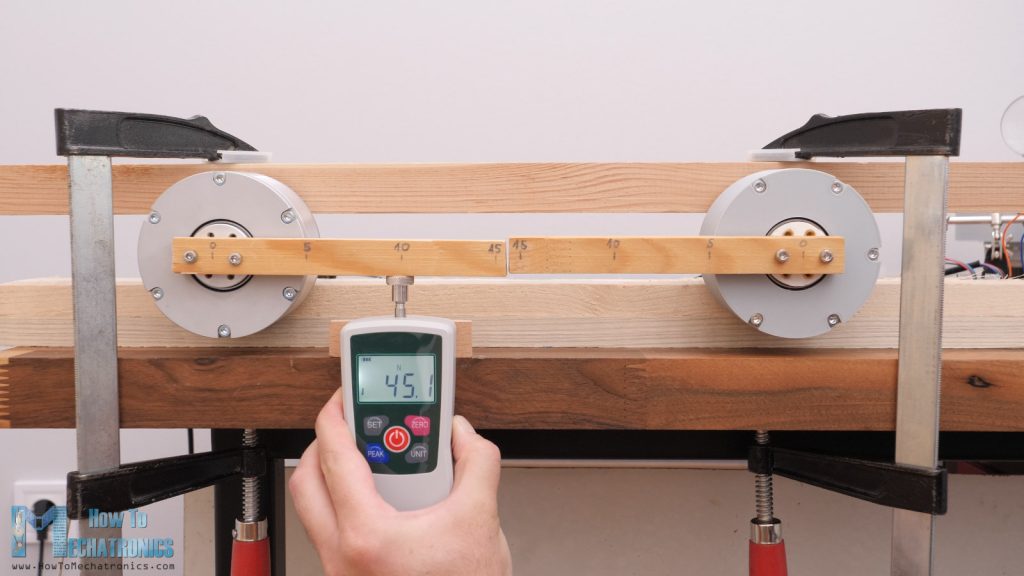 I got a reading of around 60N, which translated into torque is around 3000Ncm or 30Nm of torque. That’s pretty impressive. Just take a look how much the plywood bends under the load.