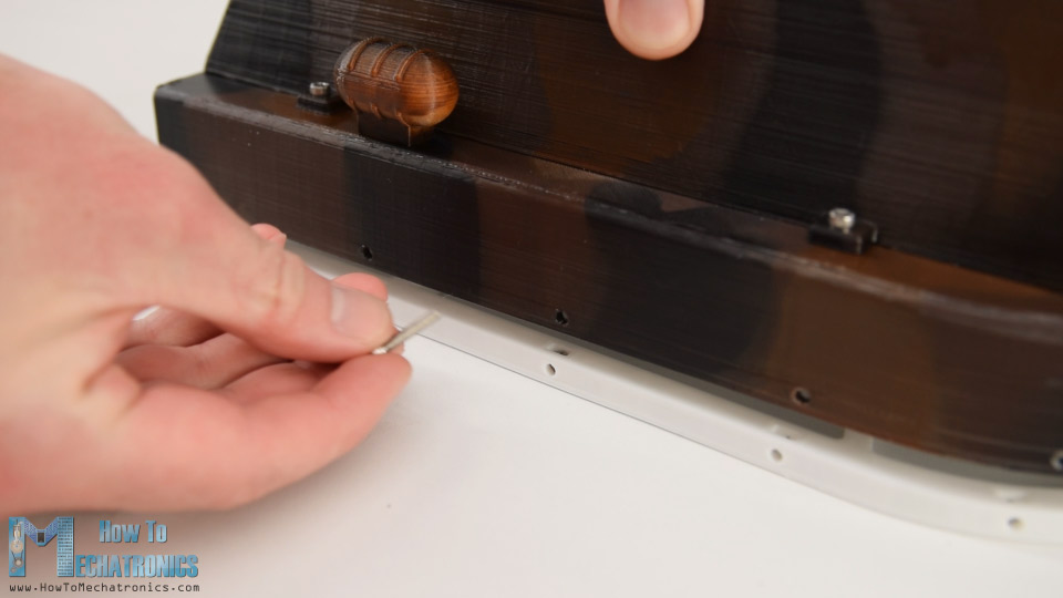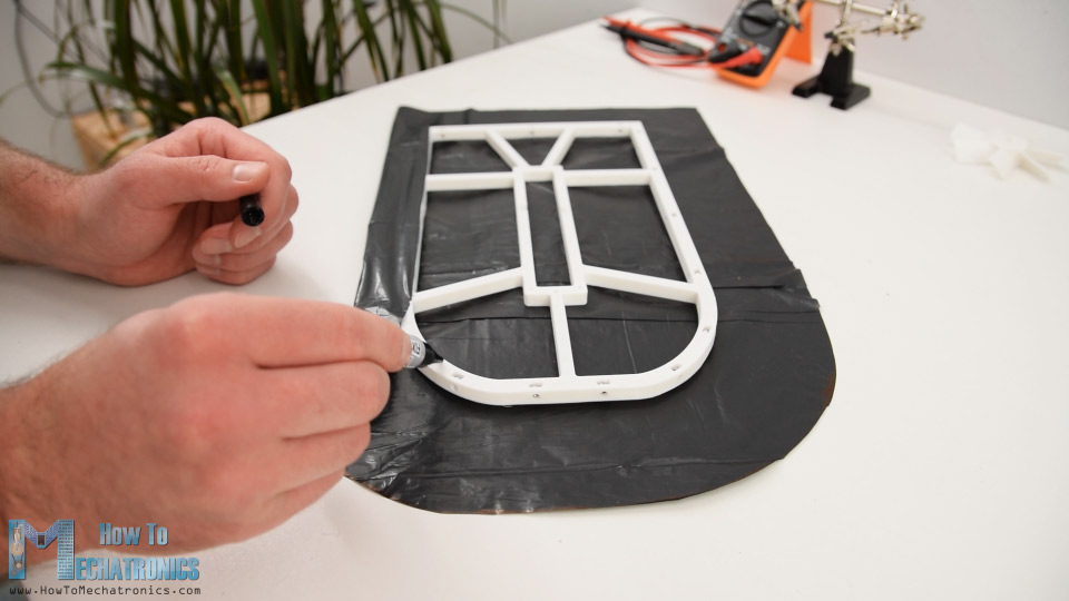 There are also slots for nuts to be placed in and in that way, we will be able to easily secure the skirt holder to the hull using M3 bolts. Once I secured all the nuts in place, I continued with making the skirt for which I used a simple trash can plastic bag.