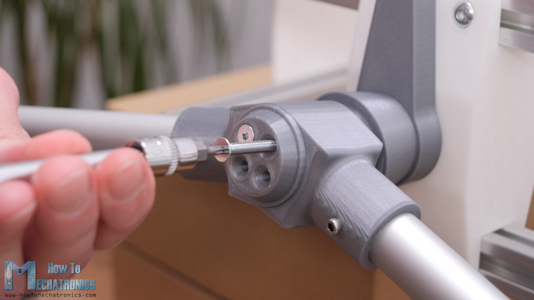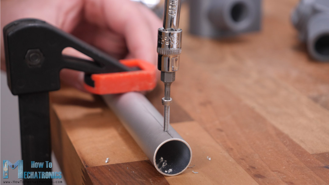 The aluminum profile is softer than the bolt so it’s easy to make the thread with the bolt itself. Following this method for drilling the holes is very important so that at the end all of the parts are positioned as they should be relative to each other.
