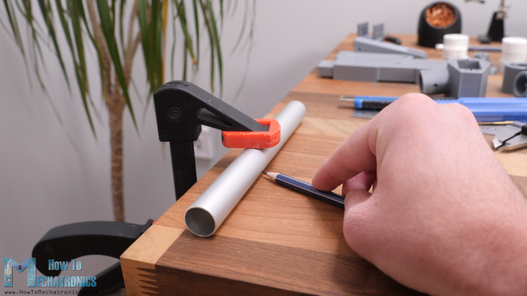Now for properly assembling these parts, we need to make holes in the round profiles at precise locations. For the purpose, first we will mark a straight line on the profile.