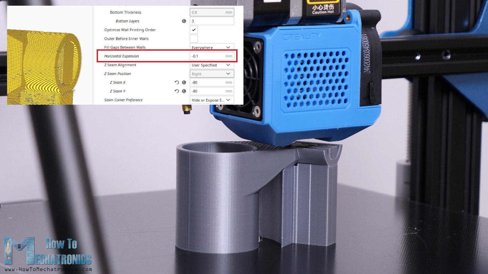 When 3D printing the parts, it’s important to use the Horizontal Expansion feature in you slicing software. I used a value of –0.1mm. This feature compensates the expansion of the filament when printing.