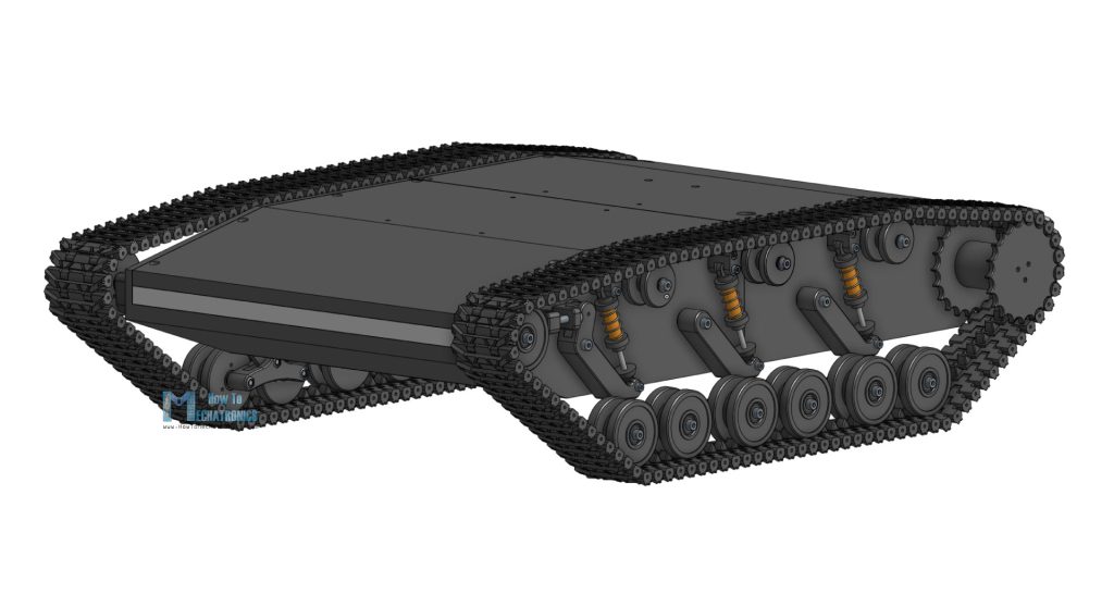 In addition to that, as this is a bogie system where a pair of wheels is attached to that moving axis, the wheels can rotate around that axis and so they can make additional vertical travel. Evidently, that will provide smoother ride and better contact between the track and the surface under it.