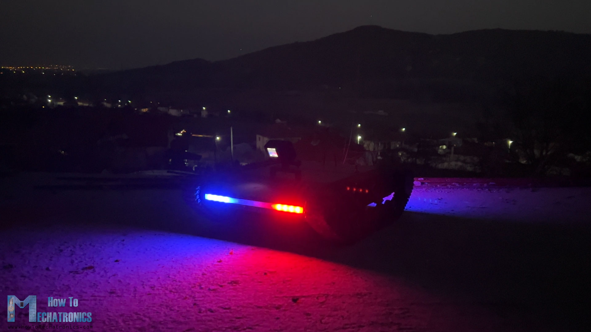 With the other 3 rocker switches we control the tank lights. There are 4 different modes. Five LEDs on each side in white color, second mode all white LEDs on, third mode all white LEDs flashing and of course, the coolest mode, a police lights strobe effect. The tank can move with any of these light modes on.