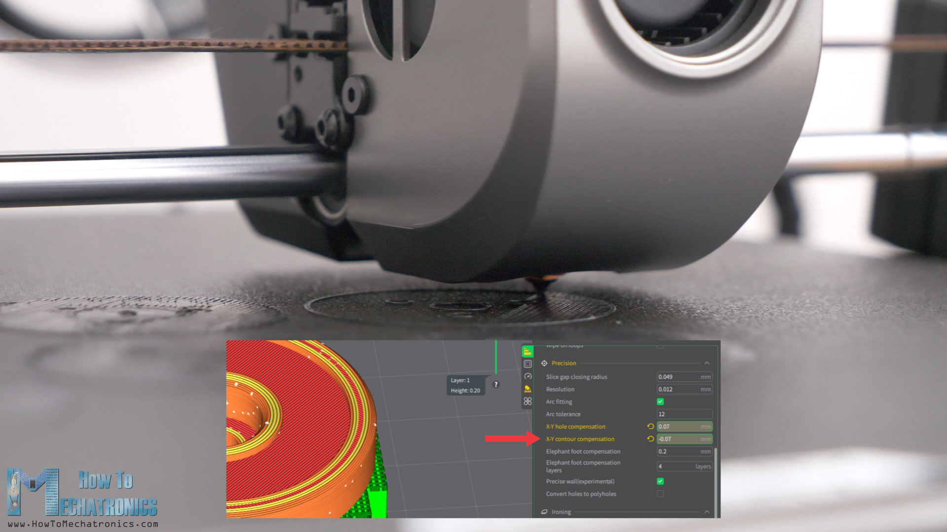 In the Creality Print slicer I used a value of –0.07 for the X-Y contour compensation, and plus 0.07 for the X-Y hole compensations feature. Of course, you should do some test prints to see what values will give you the best results on your 3D Printer.