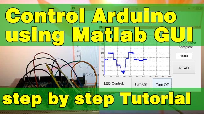 In this Arduino and Matlab GUI Tutorial we will learn how to control the Arduino Board using Matlab GUI (Graphic User Interface). We will make a Matlab GUI with two buttons for turning on and off a led and an axis for plotting the analog input from a photocell (light-dependent resistor).