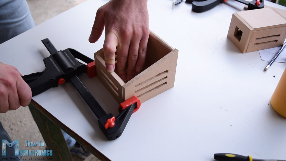 For assembling the cases I used a wood glue and some clamps, as well as some screws.