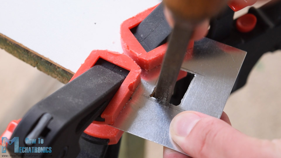 I also made a slot for the OLED display on the front panel, as well as, cut a small piece of aluminum to size which I will later attach on the front panel as a decoration.