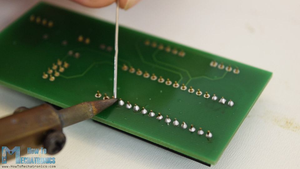 I started assembling the electronics components of this project by soldering pin headers on to the PCB. In this way we can easily connect and disconnect the components when needed.