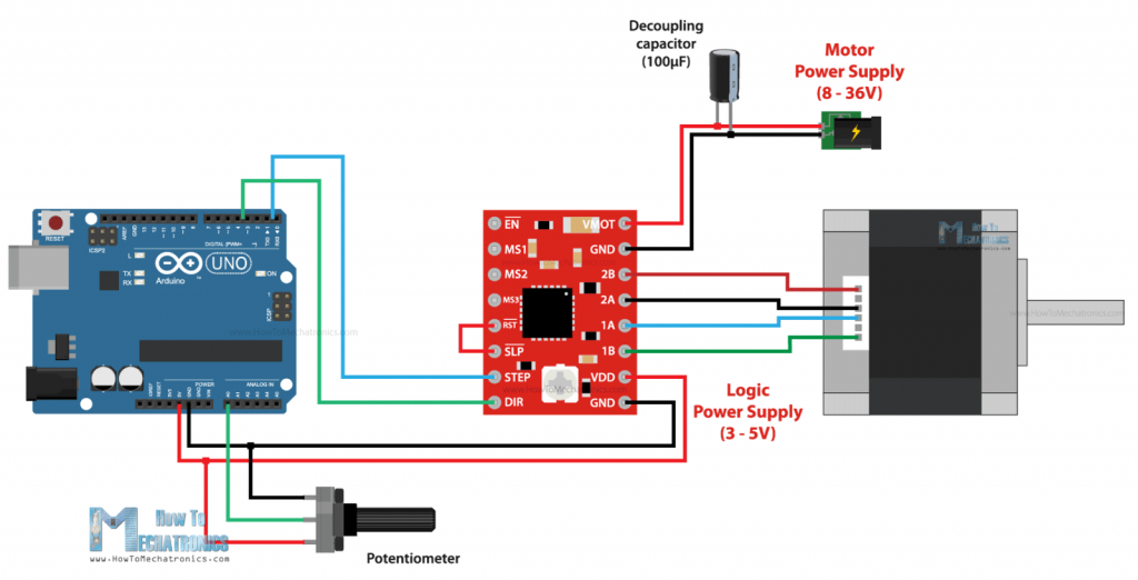 How To Control NEMA17 Stepper Motor with Arduino and A4988 Stepper Driver