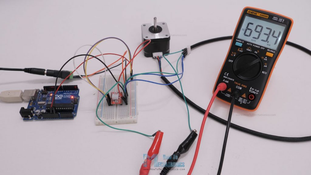 All right, so now that we know how to connect the stepper motor and the driver to the Arduino board, we can move on with explaining how to program or code the Arduino for controlling the stepper. However, before we do that, or before we power the motor, there is one more very important thing that we need to do, and that’s to adjust the current limit of the driver.