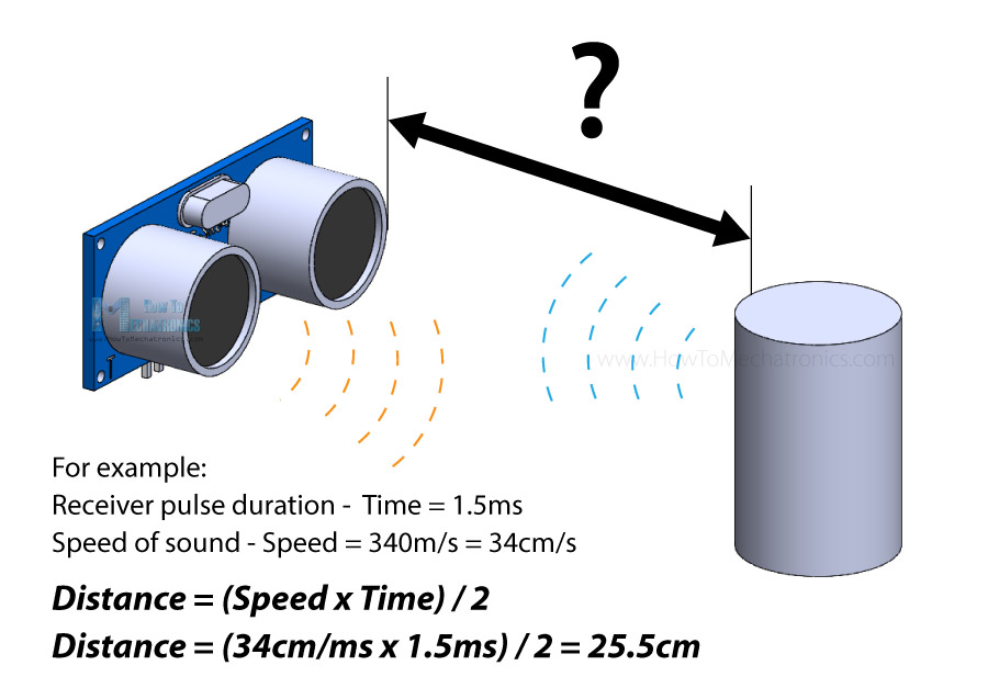 So, if the Echo pin was HIGH for 2ms (which we measure using the pulseIn() function), the distance from the sensor to the object is 34cm.